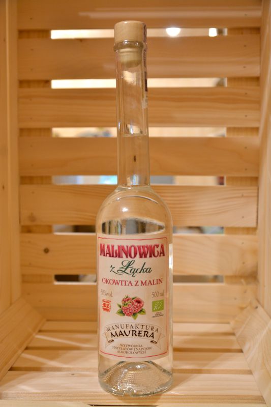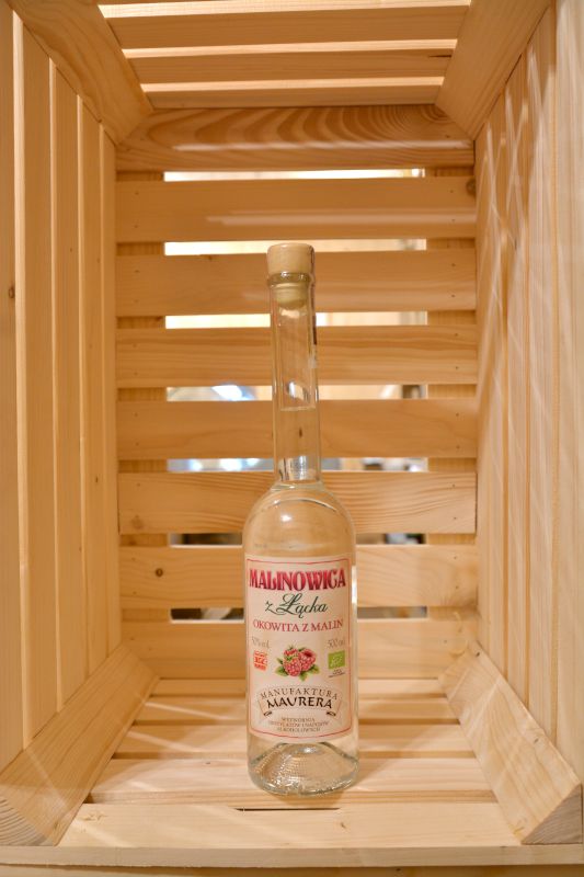 Orginalna Okowita Łącka o mocy 50% wytwarzana z owoców maliny leśnej.