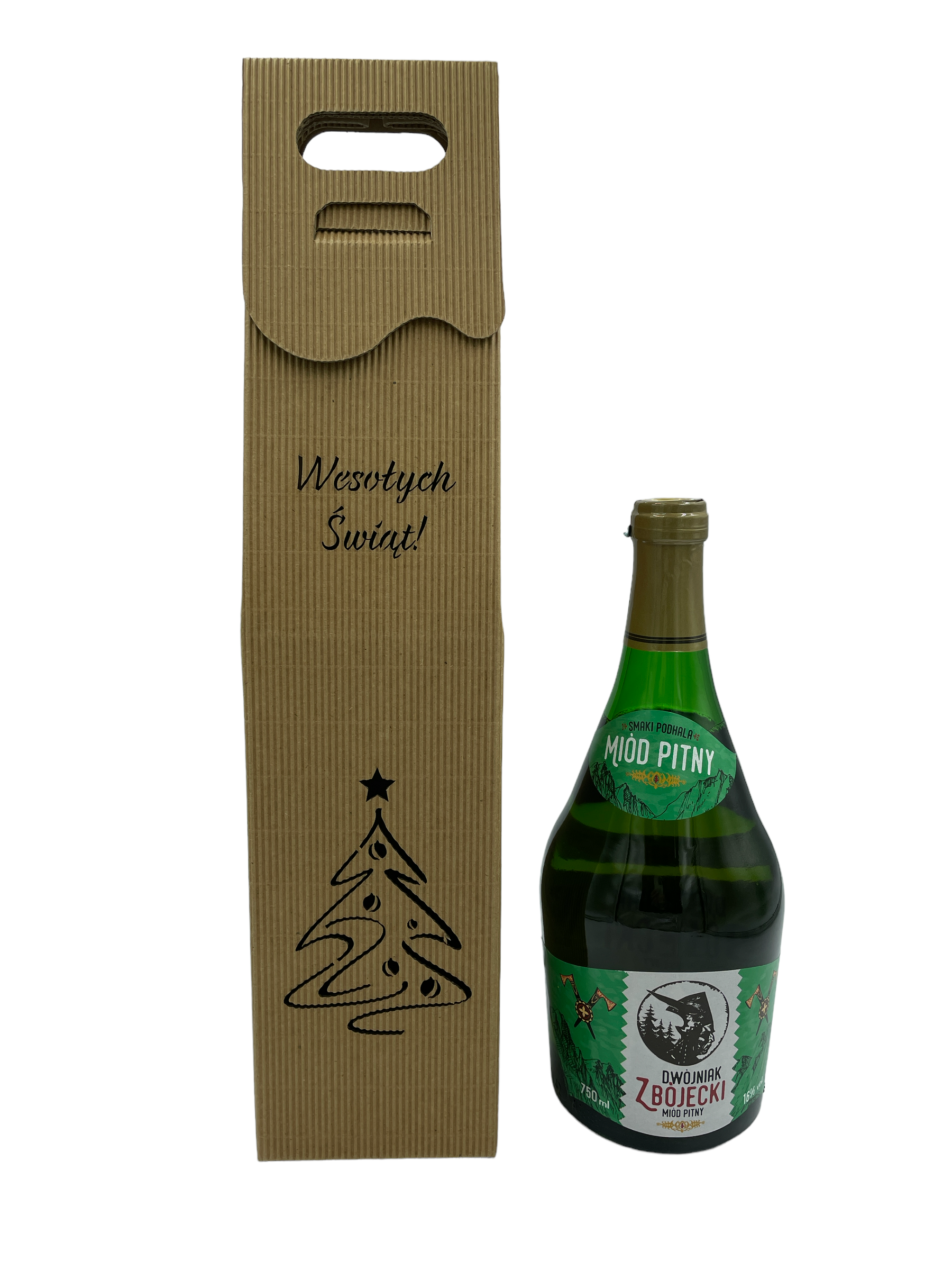 • Miód pitny dwójniak Zbójecki 750ml w ozdobnym pudełku z moywem świątecznym.