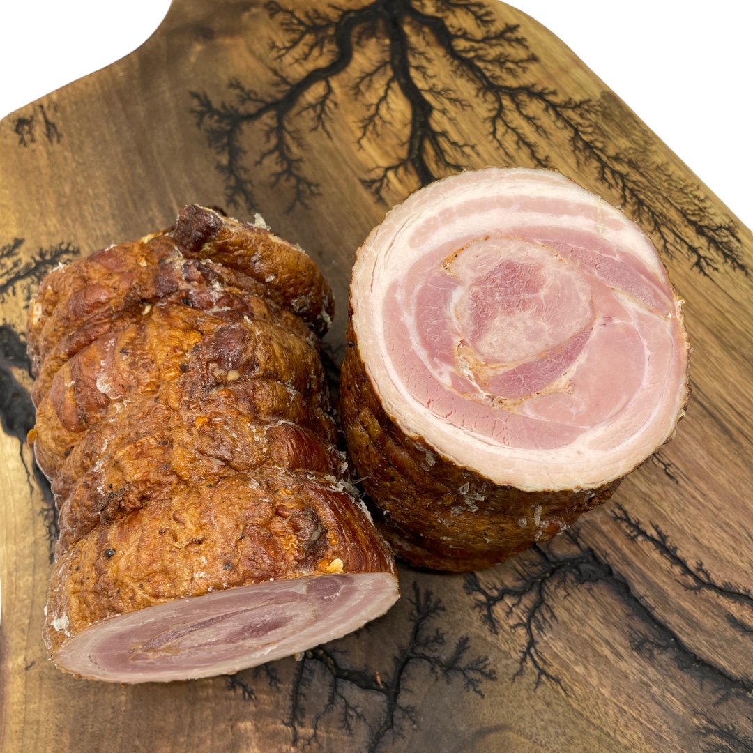 • Rolada boczkowa od Gaździny to produkt wędzony w tradycyjnej wędzarni  ze 108g surowca uzyskano 100g gotowego produktu.