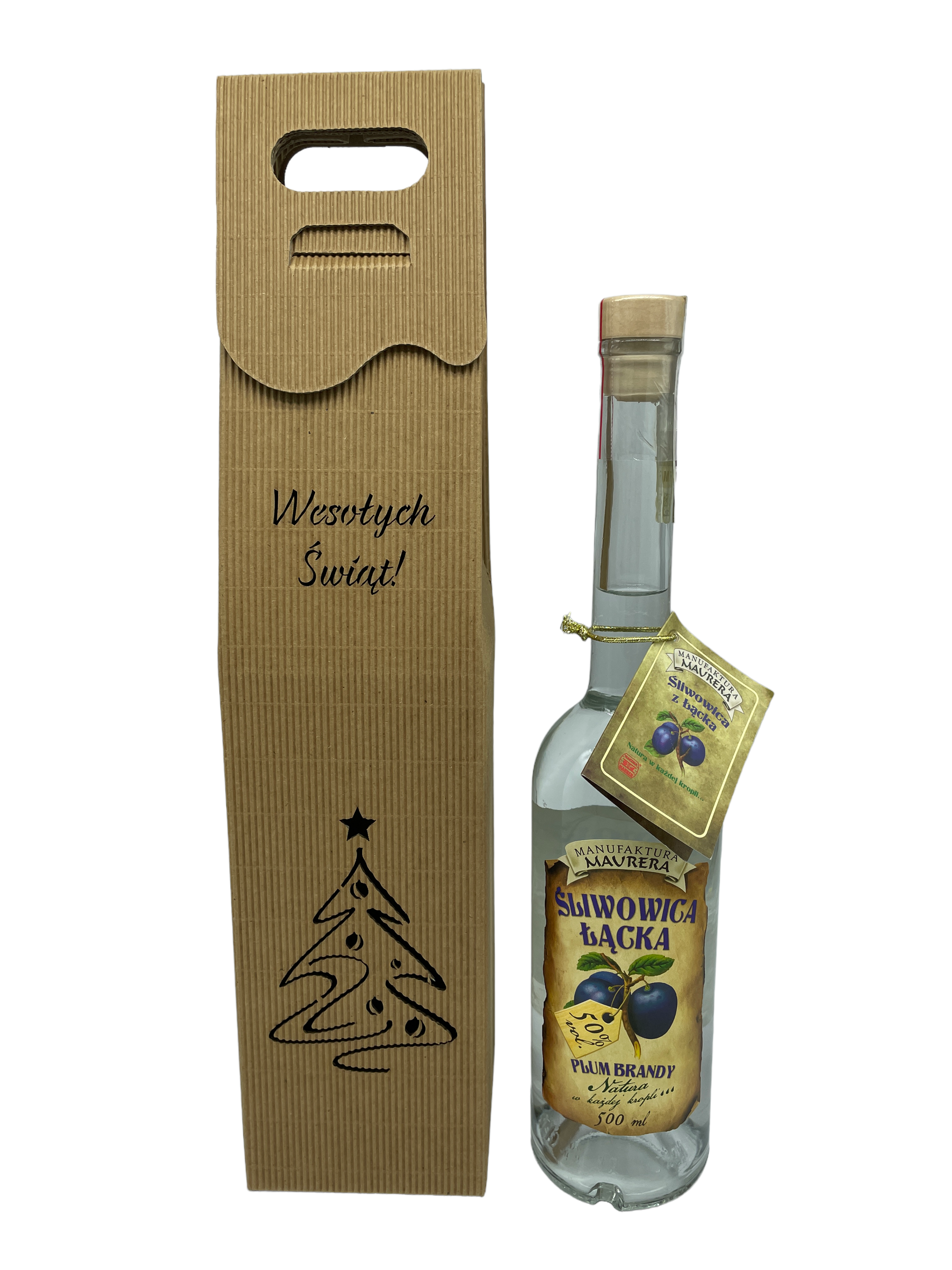 • Oryginalna Śliwowica Łącka 50% 500ml w ozdobnym pudełku z motywem światecznym.
