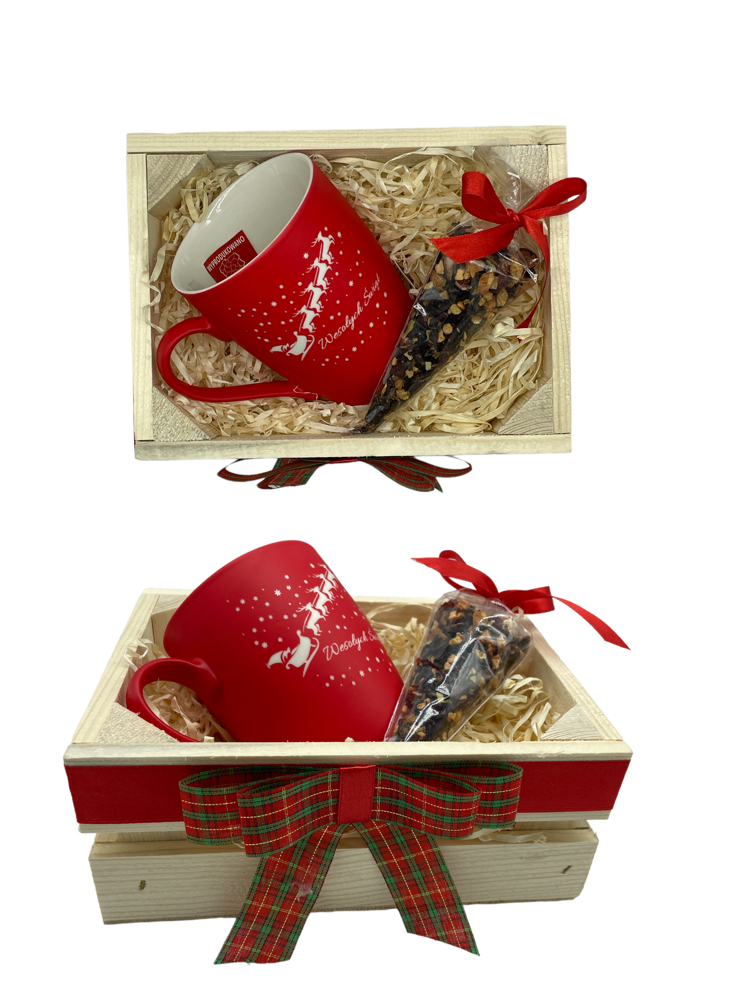 • Zestaw składa się z kubka z grafiką świąteczną, herbaty owocowej 20g. Całość zapakowana w drewnianą zdobioną skrzynkę, owiniętą ozdobną folią celofanową.