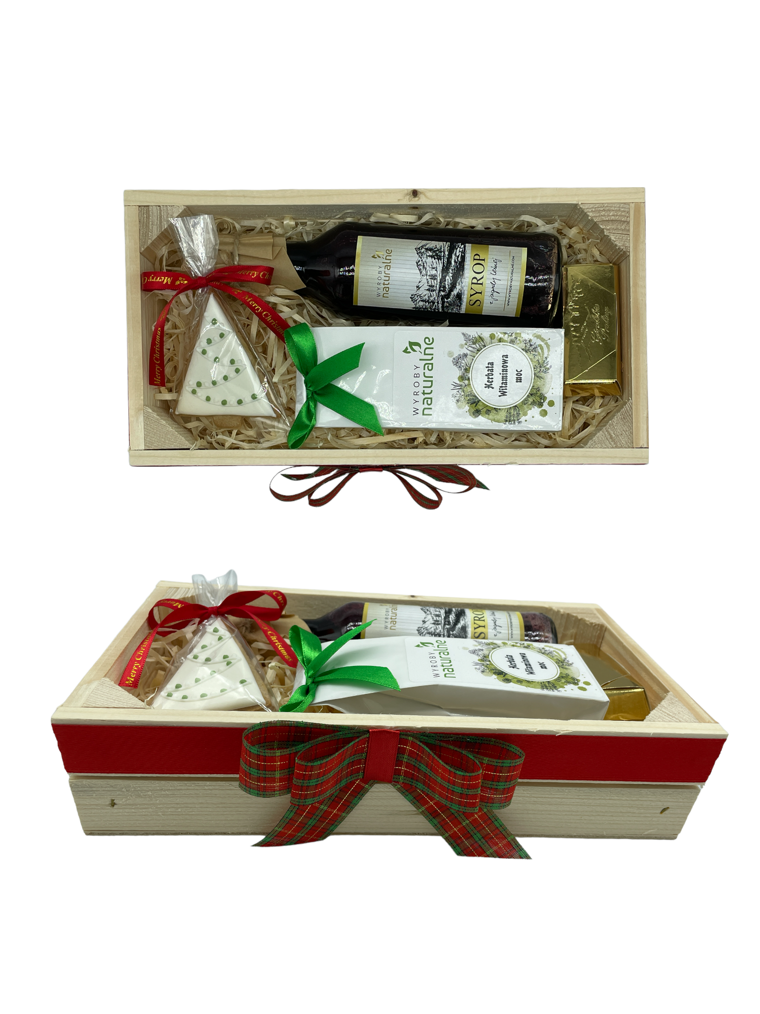 Całość zapakowana w drewnianą zdobioną skrzynkę, z wypełnienie, zawinięte w folię celofanową.
