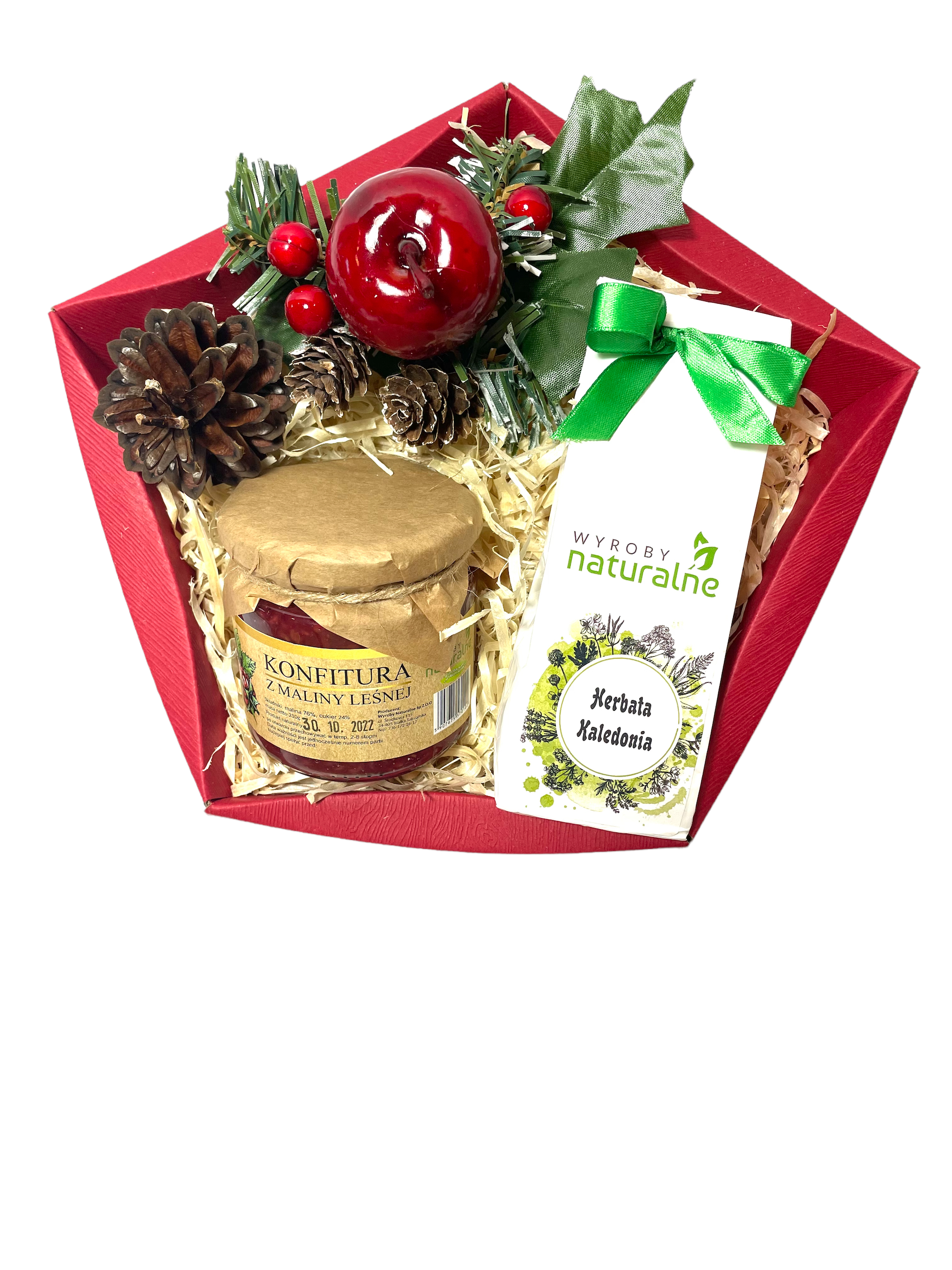• Pudełko + wypełnienie+ ozdoby, folia celofanowa+ wstążka