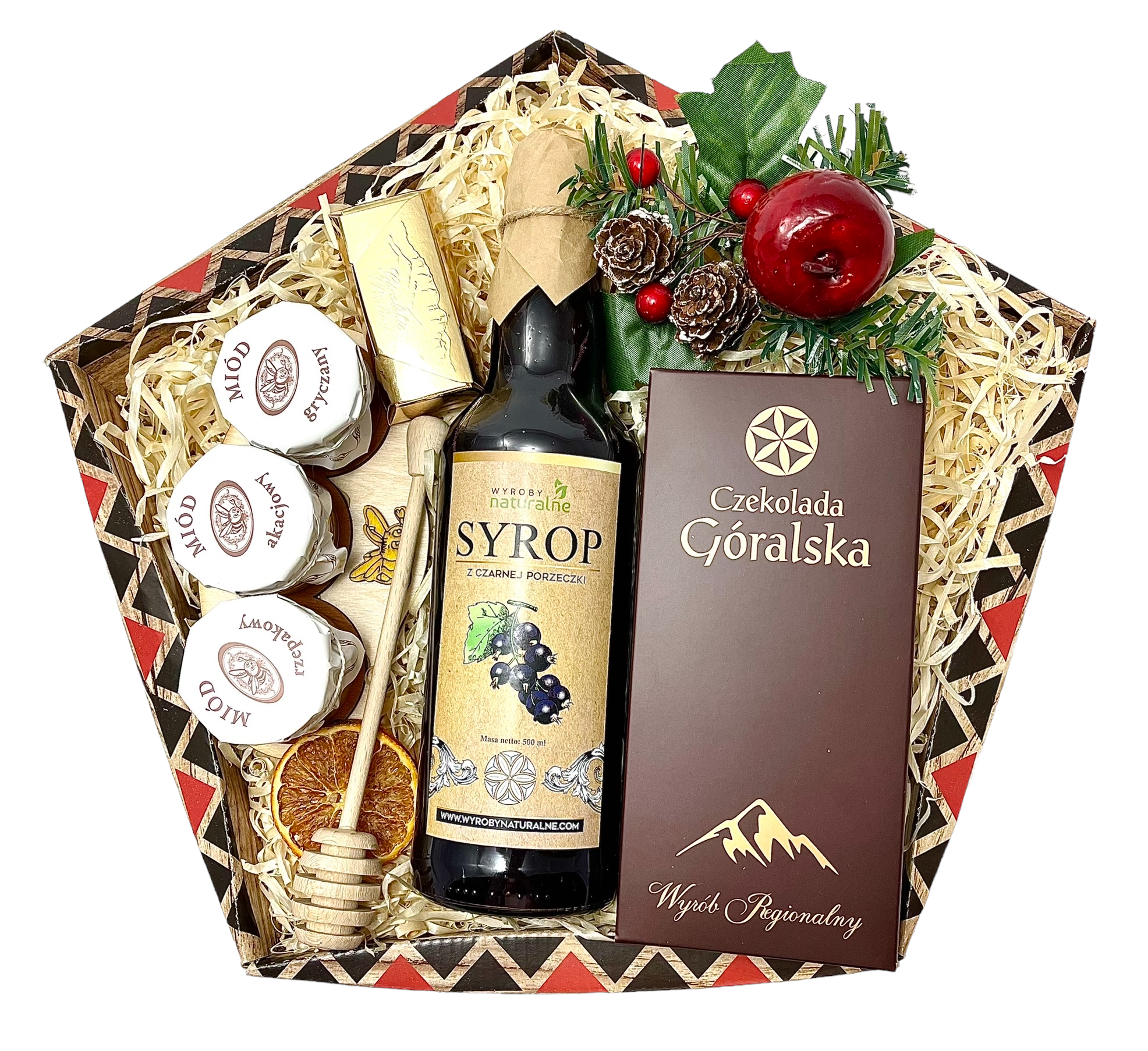 • Pudełko + wypełnienie+ ozdoby, folia celofanowa+ wstążka