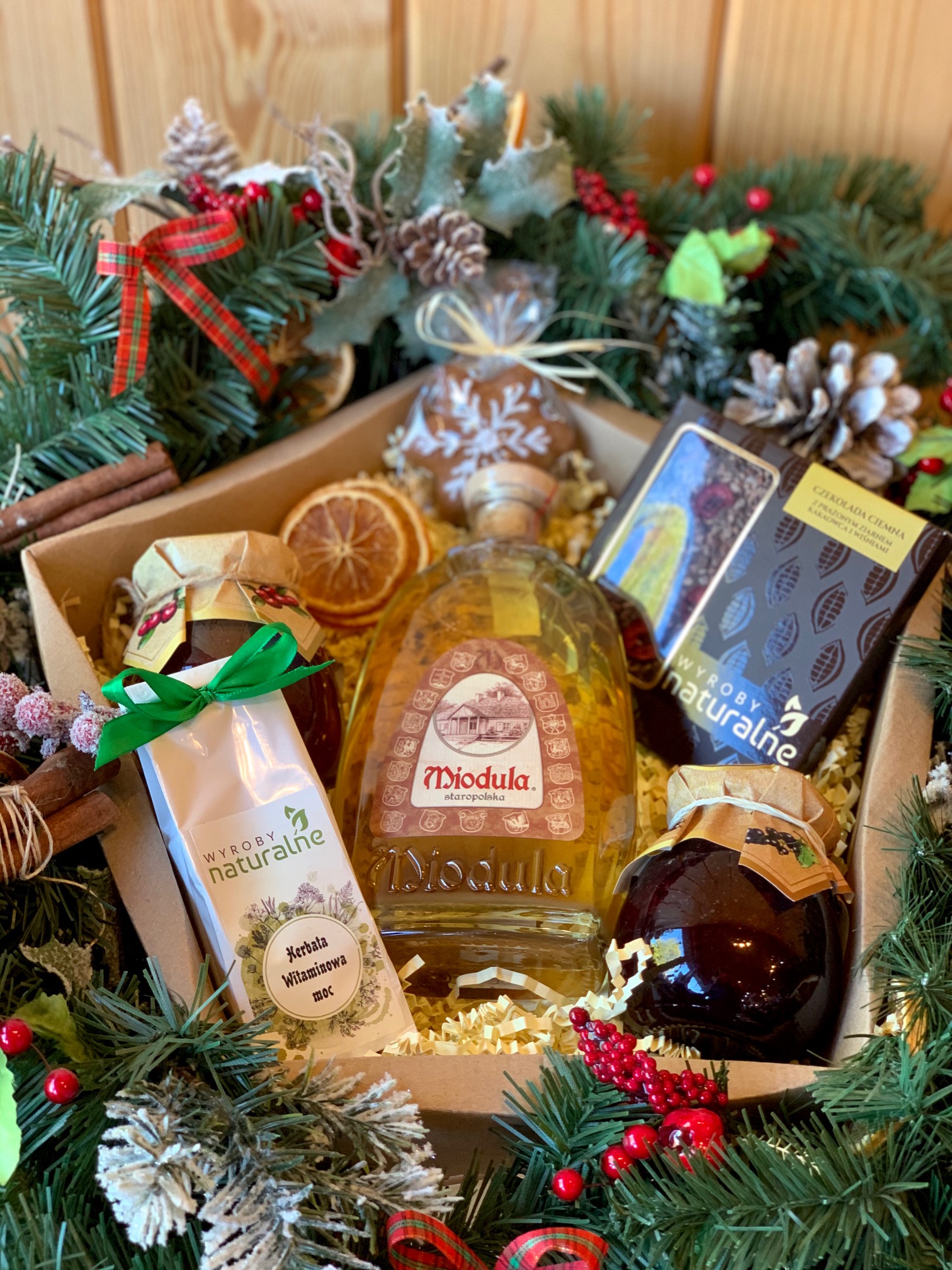 Miodula Staropolska, herbata tropikalny raj, konfitura z czarnej porzeczki 280g, konfitura żurawinowa 280g, czekolada do wyboru: