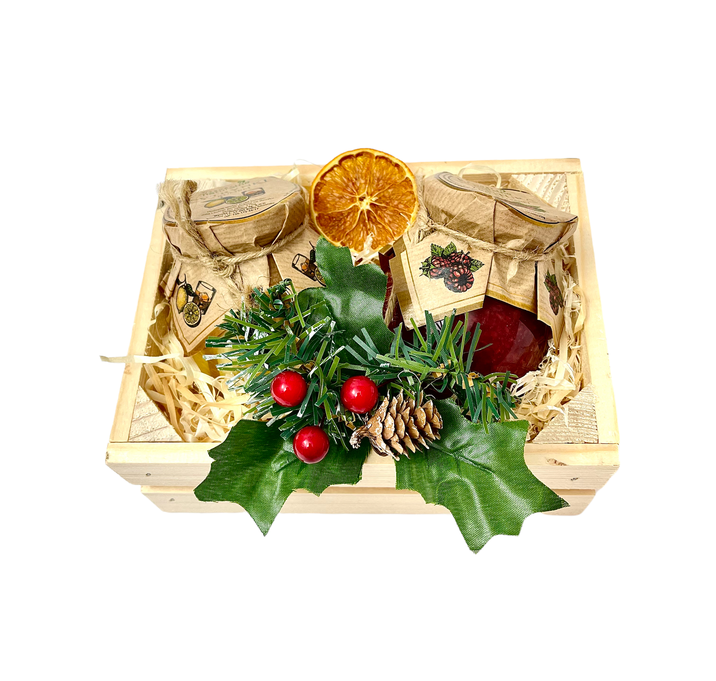 • Skrzynka drewniana, wypełnienie, ozdoby, celafon, wstążka