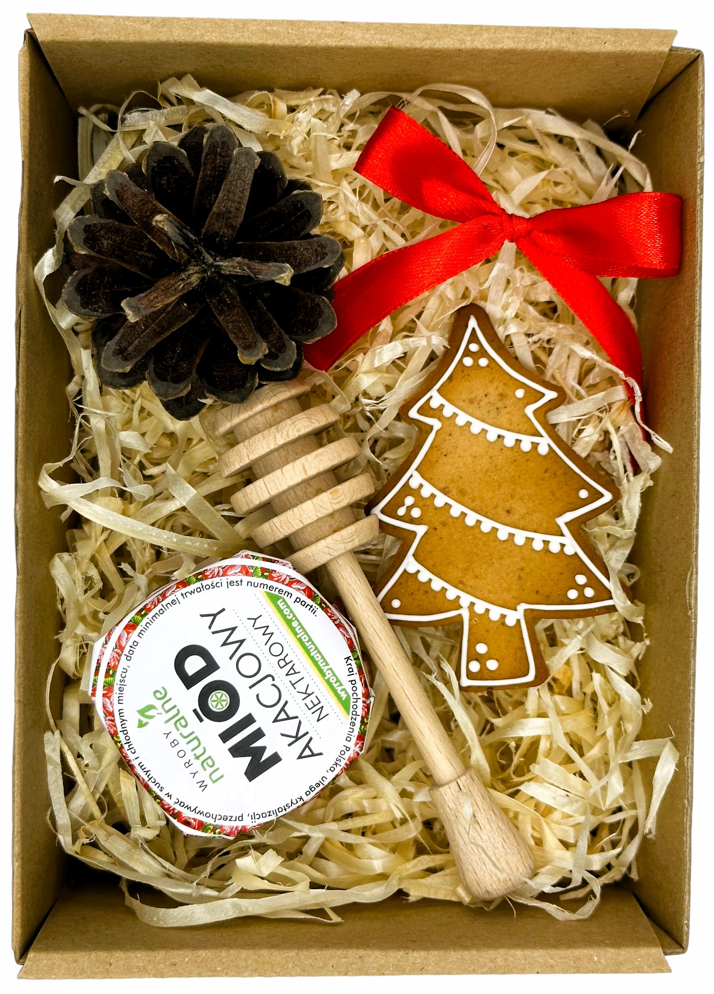 Nasz zestaw "Świątecznego Słodkiego Uroku" to doskonały prezent dla rodziny, przyjaciół, a także dla Ciebie samego. Delikatny miód, piękna łyżka, smakowity piernik i urocza ozdoba sprawią, że te święta będą jeszcze bardziej wyjątkowe i pełne radości. Daj swoim bliskim chwilę słodyczy i uroku, którymi można cieszyć się w czasie Bożego Narodzenia.