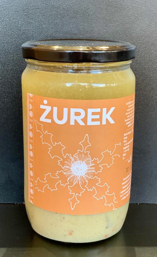 Składniki:Wywar mięsno-warzywny ( marchewka, pietruszka, kości wieprzowe), pieczarki marynowane, śmietana 1%, mąka pszenna 0,5%, woda, przyprawy, sól 0,1%, zioła naturalne.